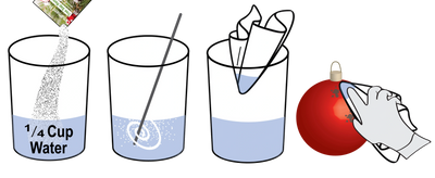 Put 1/4 cup of water into a mug or glass and add the contents of the Ornament Helper pouch.